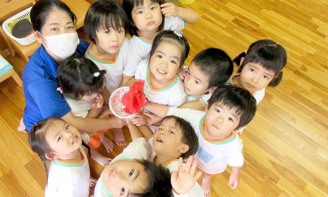 感謝の心を育てるキリストの愛を基に、温かい雰囲気の中で子どもたちの自立心を育くみ、地域を愛し愛される保育園をめざします。